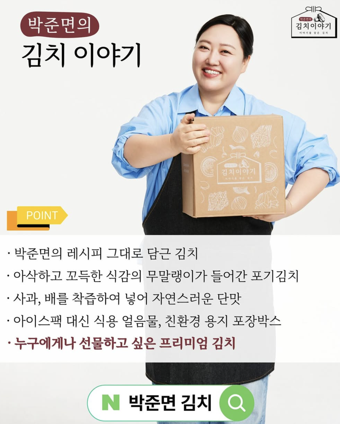 - 박준면 김치: 스티로폼 포장재 + 박스 포장, 2중 비닐 포장, 스티로폼 손잡이 (포장 상태: 최상)